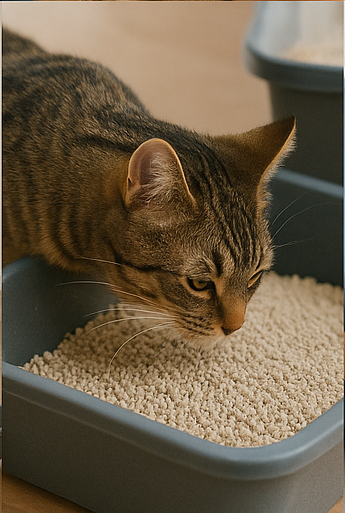 Η γάτα συχνά συνδέει τον πόνο με την άμμο. Αν πονέσει όταν ουρεί, μπορεί να αναζητήσει άλλο σημείο. Συχνά θα δεις συχνή ούρηση, μικρές ποσότητες, ή γκρίνια όταν κάθεται.